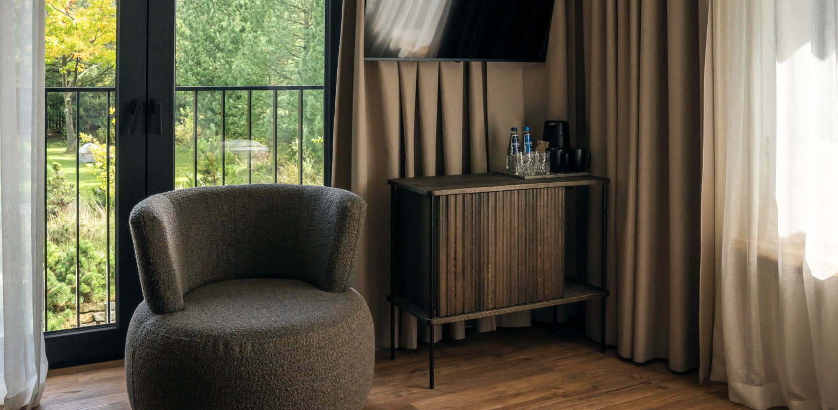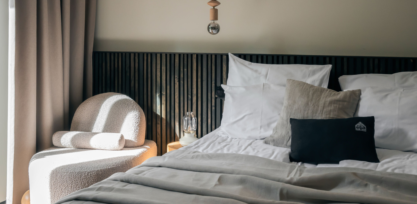 Captivated by the nature of the Tatra mountains, we wanted to make everything outside correspond with everything inside while designing SLOW. That is why the selected color patterns and materials allude to a mountain adventure. Moreover, the warm minimalism is conducive to a deep rest in the slow style… We value modern and natural Polish design as well, which is why we have decided to get most of our furniture and accessories from Polish designers and craftsmen. And to maximize the comfort, all of that is of the highest quality.